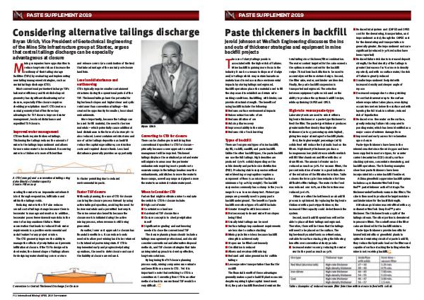 backfill underground. The benefits of paste
