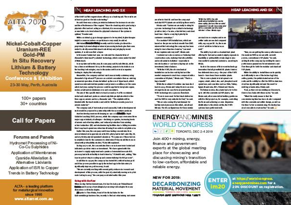 conventional SX plant,” Nivala said. “That is a