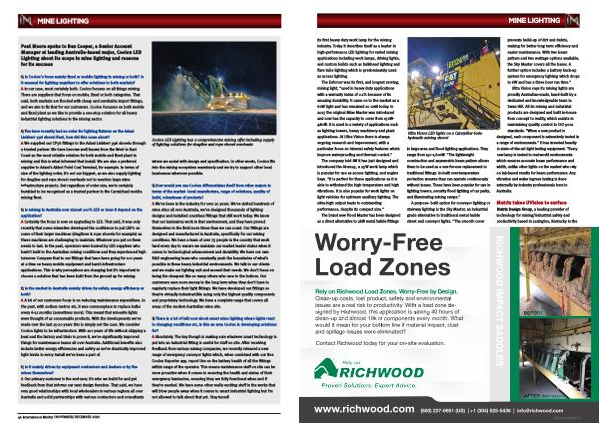 Ultra Vision says its mining lights are proudly Australian-made , hand-built by a dedicated and knowledgeable team in Swan Hill . All its mining and industrial products are designed and built in-house from concept to reality , which assists in maintaining quality control to ISO 9001 standards . “ When a new product is designed , each component is extensively tested in a range of environments .” It has invested heavily in state-of-the-art light testing equipment . “ Every new lamp is tested in real-world environments which ensures accurate beam performance and width , unlike other lights on the market who rely on lab-based results for beam performance . Any vibration and water ingress testing is done externally by industry professionals here in Australia .
