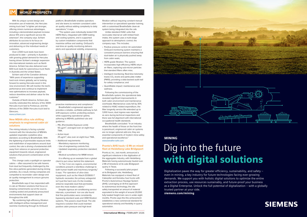 “ In Tier-1 iron ore regions, environmental conditions present a relentless challenge to both human health and machinery longevity,” it says.“ For operators of ultra-class equipment, such as the Hitachi EX3600-7 hydraulic excavator, the primary antagonist isn’ t just the hard rock; it’ s the invisible, airborne respirable dust that permeates even the most modern cabins.”