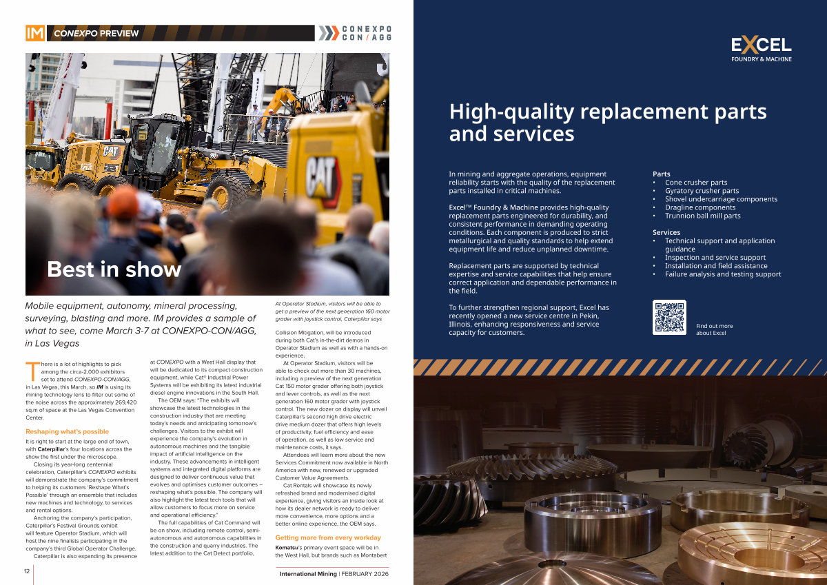 There is a lot of highlights to pick among the circa-2,000 exhibitors set to attend CONEXPO-CON / AGG, in Las Vegas, this March, so IM is using its mining technology lens to filter out some of the noise across the approximately 269,420 sq. m of space at the Las Vegas Convention Center.