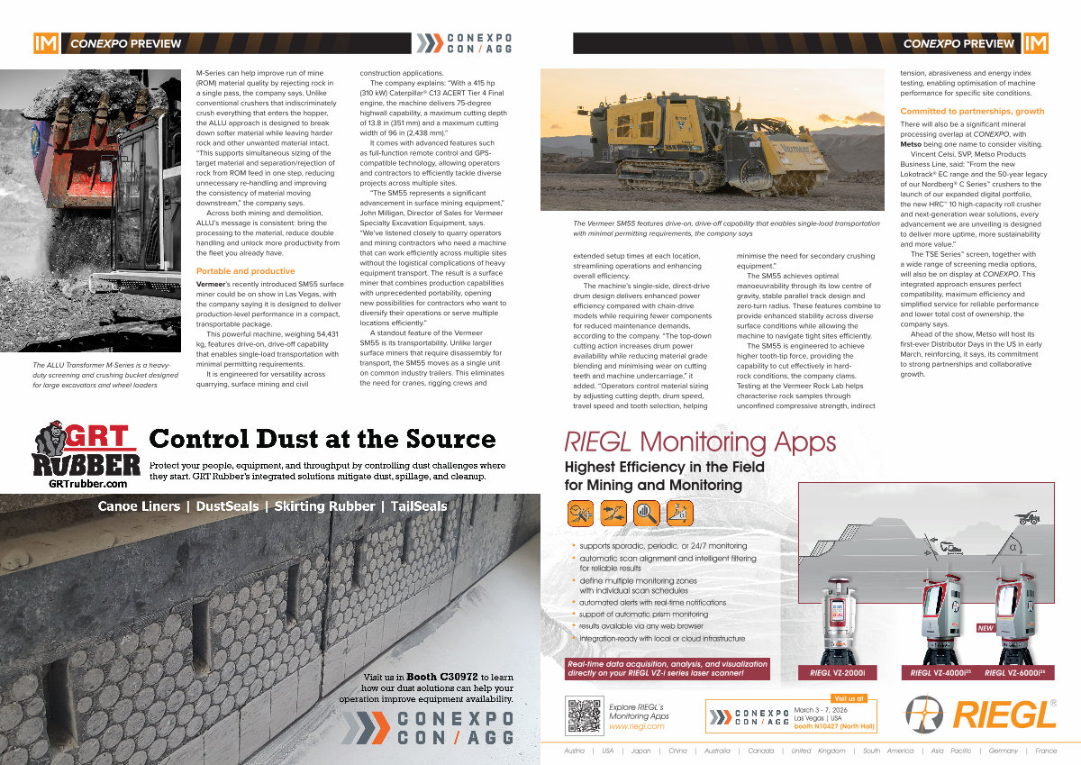 Vermeer’ s recently introduced SM55 surface miner could be on show in Las Vegas, with the company saying it is designed to deliver production-level performance in a compact, transportable package.