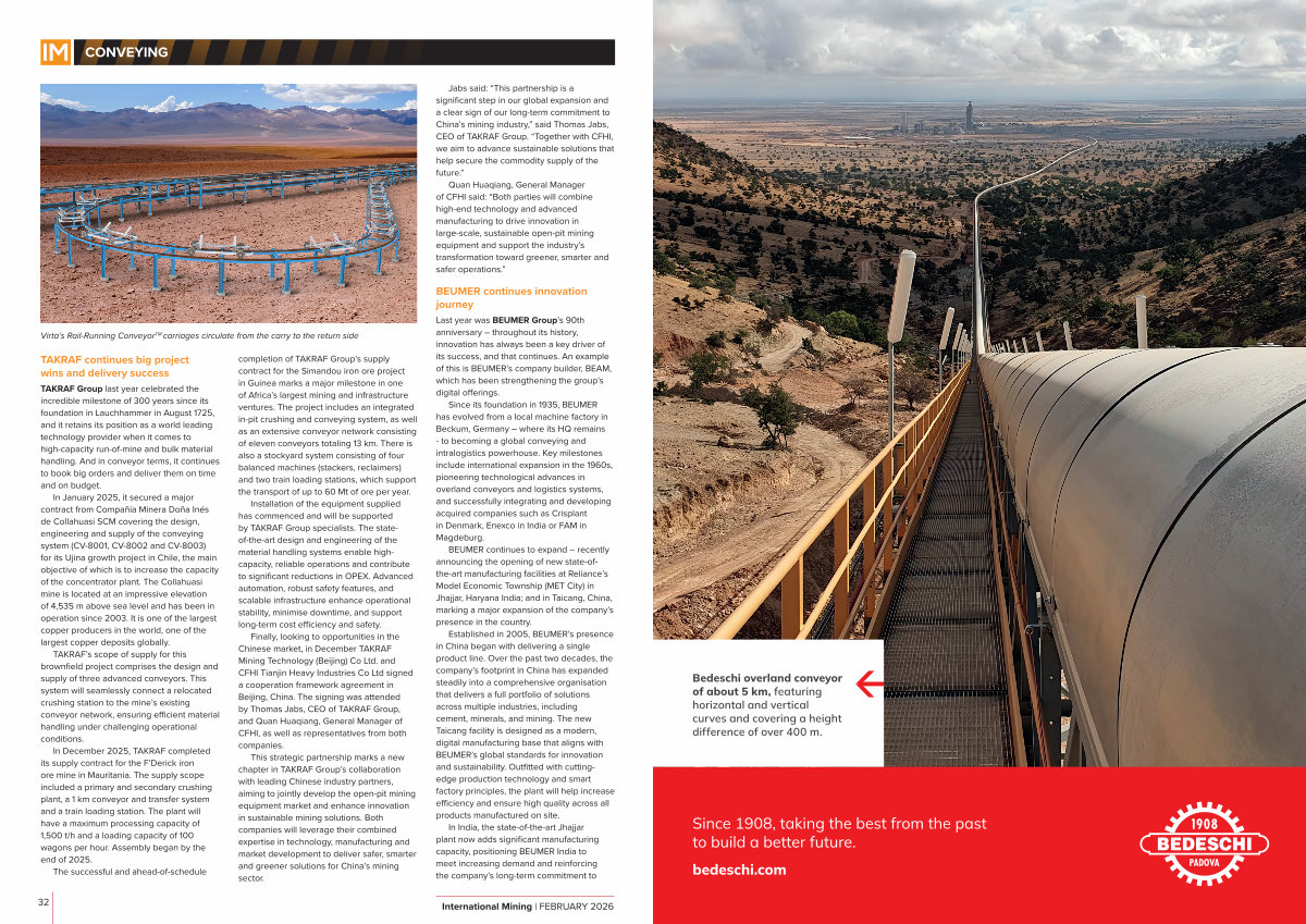Bedeschi overland conveyor of about 5 km, featuring horizontal and vertical curves and covering a height difference of over 400 m.
