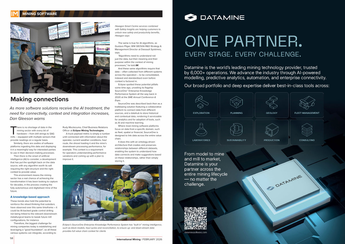 Eclipse’ s SourceOne Enterprise Knowledge Performance System has“ built in” mining intelligence, such as block models, haul cycles and reconciliation, to ensure up- and down-stream data provides full value chain context for clients