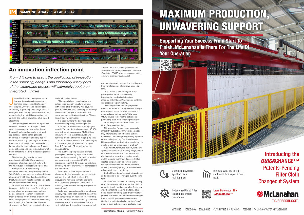 A trained ML4DrillCore system, Nitz says, applies the same rules to every image, every time. Over thousands of core metres, this eliminates the rework and reinterpretation cycles required in manual datasets. It also creates a digital audit trail where teams can see exactly what the model detected and why, enabling geologists to override or refine predictions confidently.