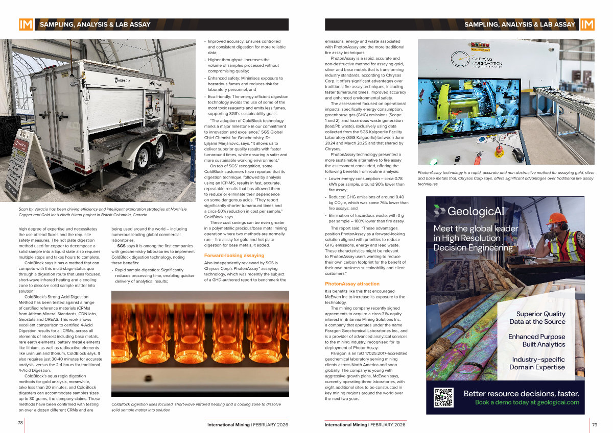 SGS says it is among the first companies with geochemistry laboratories to implement ColdBlock digestion technology, noting these benefits: