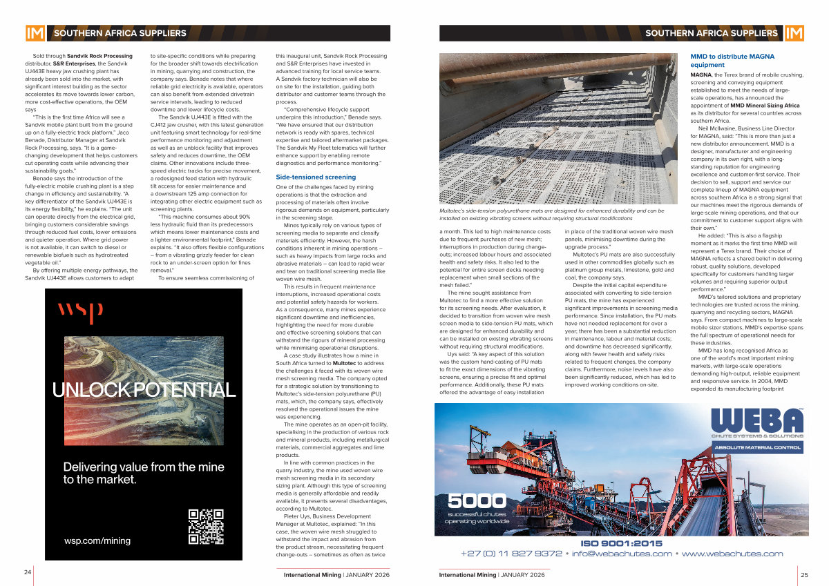 MMD has long recognised Africa as one of the world’ s most important mining markets, with large-scale operations demanding high-output, reliable equipment and responsive service. In 2004, MMD expanded its manufacturing footprint International Mining | JANUARY 2026 25