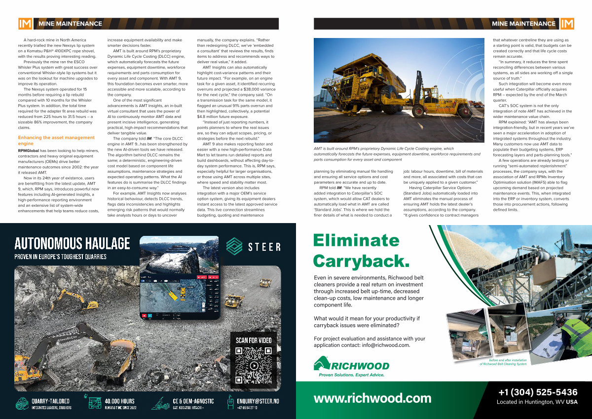 RPM told IM:“ We have recently added integration to Caterpillar’ s SOC system, which would allow CAT dealers to automatically load what in AMT are called‘ Standard Jobs’. This is where we hold the finer details of what is needed to conduct a