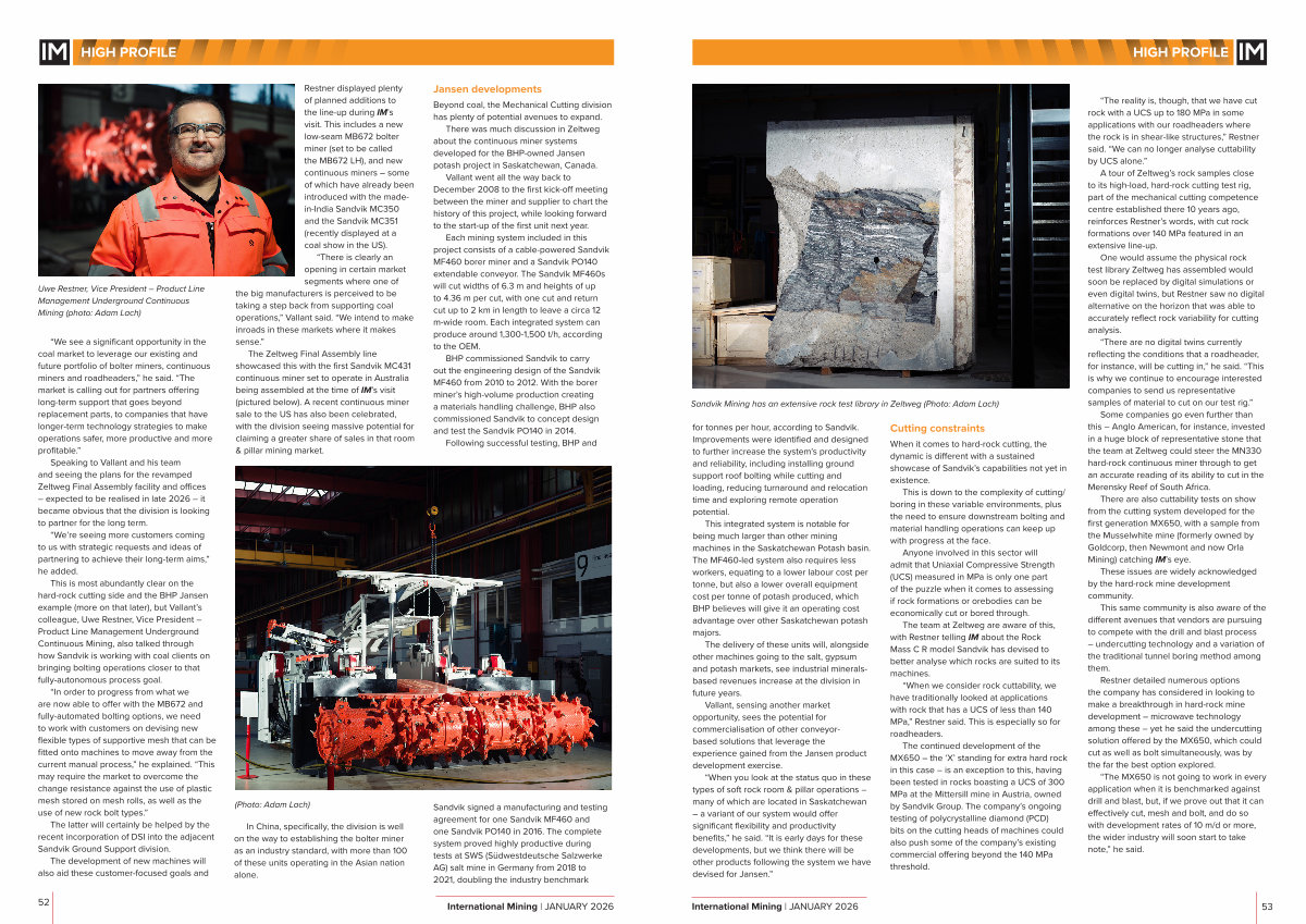 There are also cuttability tests on show from the cutting system developed for the first generation MX650, with a sample from the Musselwhite mine( formerly owned by Goldcorp, then Newmont and now Orla Mining) catching IM’ s eye.