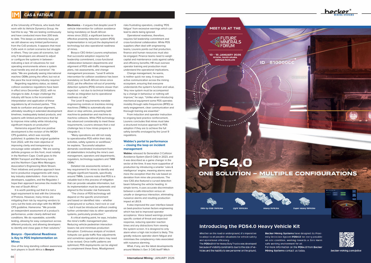 B e c k e r Mi ni n g S y s t e m s h a v e d e si g n e d i t s P r o xi- mi t y D e t e c ti o n S y s t e m P D S 4. 0 f o r e v e r y p o s si bl e o n- si t e c o n di ti o n, w o r ki n g t o w a r d s a Z e r o H a r m s a f e w o r ki n g e n vi r o n m e n t f o r all. F o r m o r e i n f o r m a ti o n o n t h e P D S 4. 0 f r o m B e c k e r Mi ni n g S y s t e m s c o n t a c t u s t o d a y. b e c k e r- mi ni n g. c o m / p d s 4
