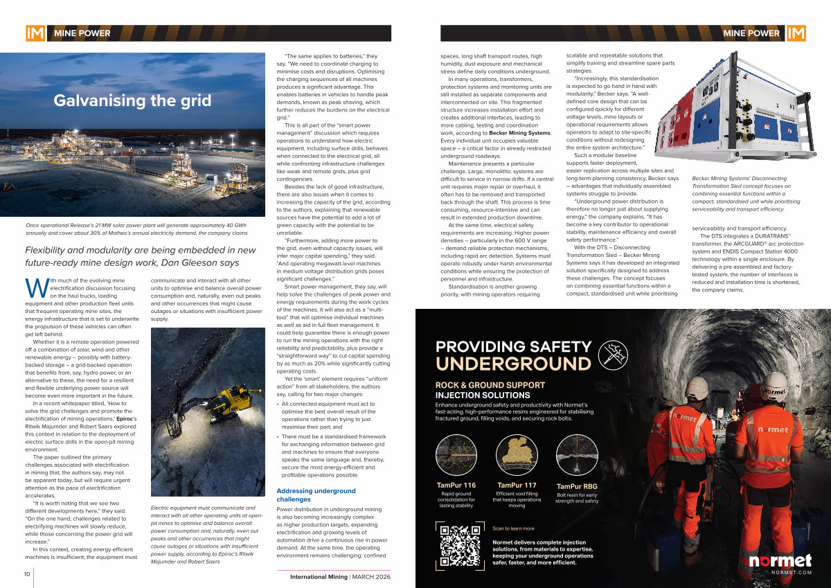 “ Increasingly, this standardisation is expected to go hand in hand with modularity,” Becker says.“ A welldefined core design that can be configured quickly for different voltage levels, mine layouts or operational requirements allows operators to adapt to site-specific conditions without redesigning the entire system architecture.”