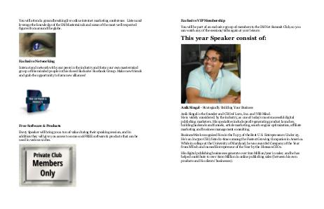 You will be part of an exclusive group of members to the IM Net Summit Club, so you