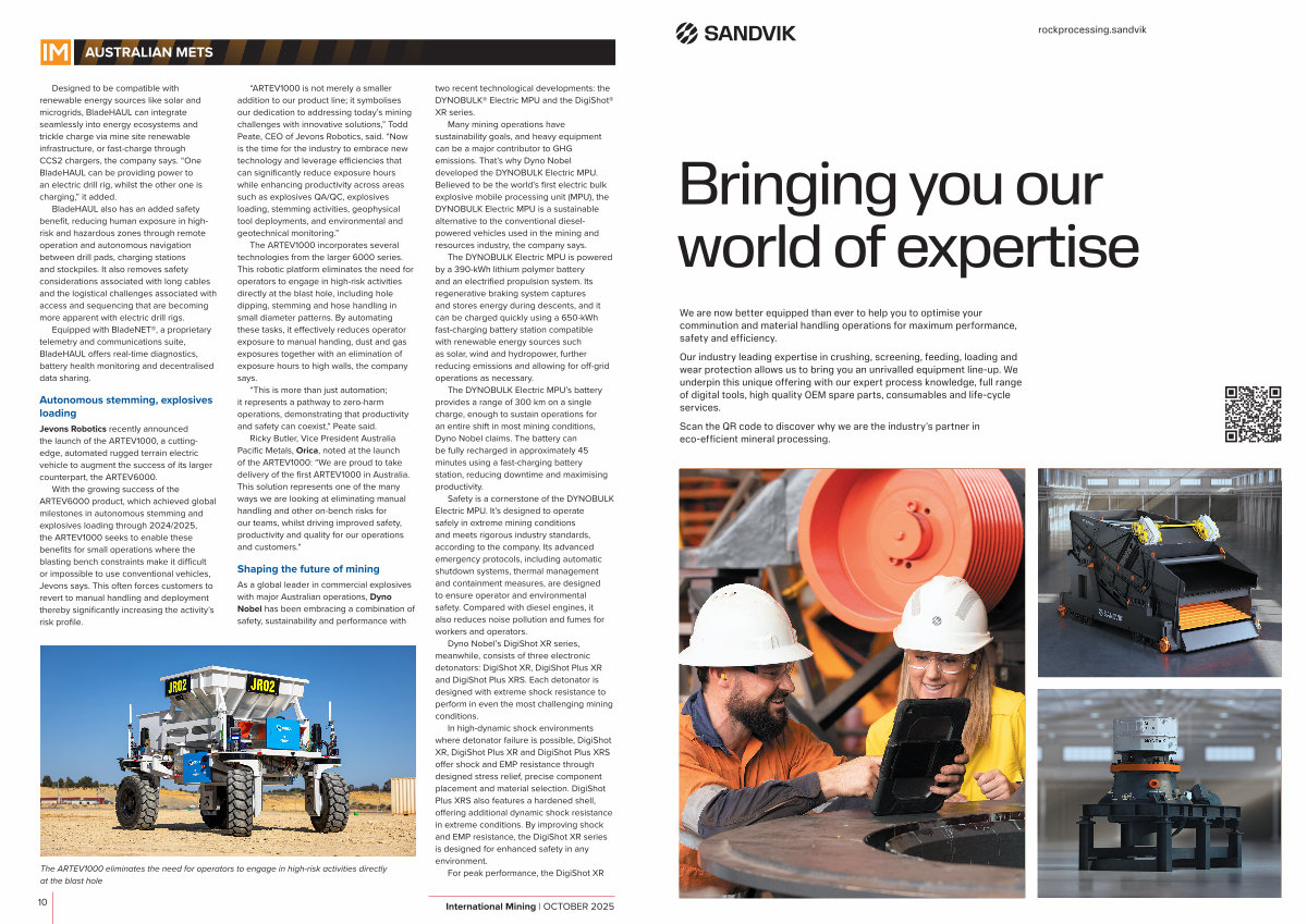 With the growing success of the ARTEV6000 product, which achieved global milestones in autonomous stemming and explosives loading through 2024 / 2025, the ARTEV1000 seeks to enable these benefits for small operations where the blasting bench constraints make it difficult or impossible to use conventional vehicles, Jevons says. This often forces customers to revert to manual handling and deployment thereby significantly increasing the activity’ s risk profile.