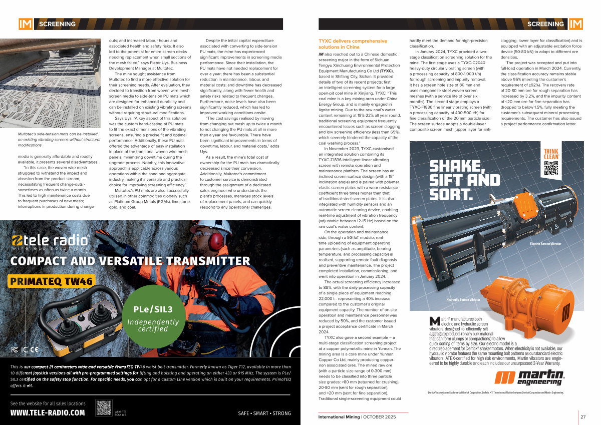 As a result, the mine’ s total cost of ownership for the PU mats has dramatically decreased since their conversion. Additionally, Multotec’ s commitment to customer service is demonstrated through the assignment of a dedicated sales engineer who understands the plant’ s processes, manages stock levels of replacement panels, and can quickly respond to any operational challenges.