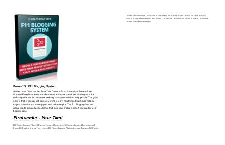huge problem for you to setup your own online empire. The F11 Blogging System