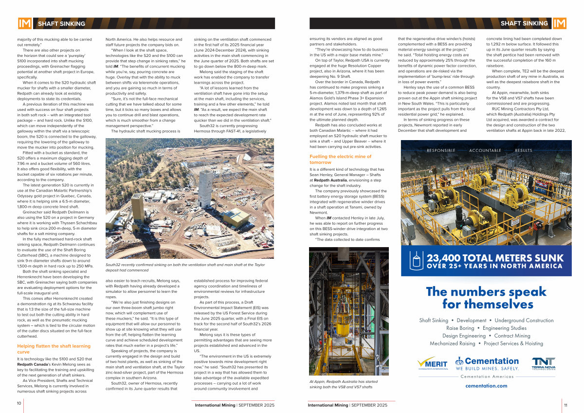 “ When I look at the shaft space, technologies like the S20 and the S100 can provide that step change in sinking rates,” he told IM.“ The benefits of concurrent mucking while you’ re, say, pouring concrete are huge. Overlay that with the ability to muck between shifts via teleremote operations, and you are gaining so much in terms of productivity and safety.
