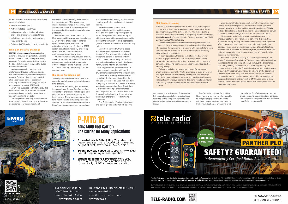 “ AFEX systems, featuring state-of-the-art sensors and automatic response technology, are designed to withstand the harsh conditions typical in mining environments,” the company says.“ The systems are installed across a range of machinery, from autonomous trucks to manually operated tractors and drills, ensuring comprehensive protection.”