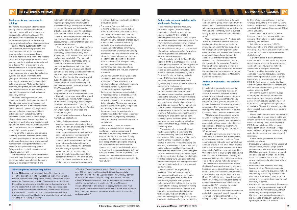 SES adds:“ Depending on the needs of mining operators, the new SES can cater to differing bandwidth and connectivity requirements. Whether it’ s SES’ s Enterprise mPOWERED services or Intelsat’ s FlexMove, they are now part of a wider portfolio. mPOWERED services deliver reliable, high-capacity, low-latency satellite throughput over a single site, whereas FlexMove, designed for mobile and temporary deployments enables highthroughput connectivity for vehicles and field teams. Both solutions help power autonomous operations, real-time data transmission, and crew safety.”