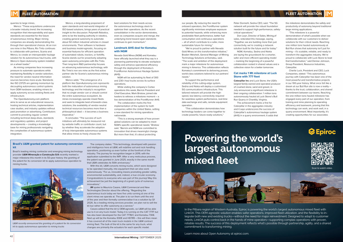 “ We’ re proud to partner with Nevada Gold Mines on this transformative initiative,” Braden Weisheit, General Manager of Mining Technology Solutions at Komatsu, said.“ The scale and ambition of this deployment mark a major milestone for autonomous mining in America. This collaboration reflects Komatsu’ s commitment to delivering proven, world-class solutions tailored to our partners’ needs.”