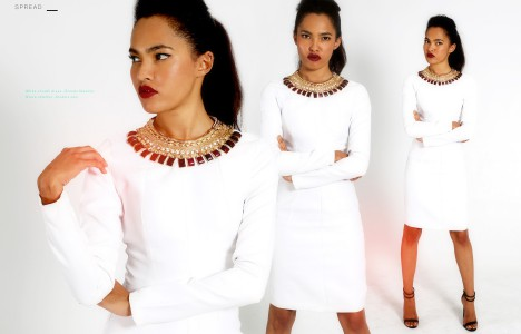 SPREAD White sheath dress –Bonolo Mashilo Black stilettos –Models own IMBO/ ISSUE 32/ '14 106