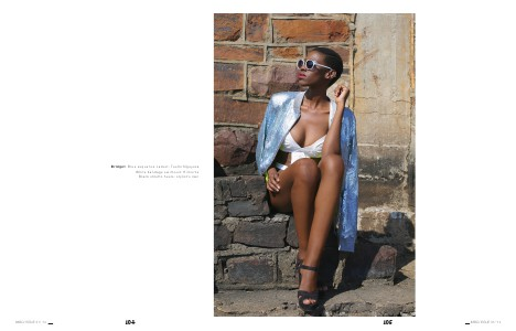 Bridget: Blue sequence Jacket: Tuello Nguyuza White bandage swimsuit: Himeros Black stiletto heels: stylist's own IMBO/ ISSUE 31/ '14 104