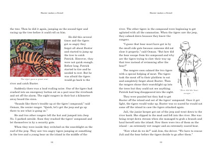 “ Sounds like there’ s trouble up at the tigers’ compound,” said Osman, the senior ranger.“ Quick, let’ s get the jeep and go up there to see what is going on.”