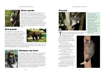 Giant pandas live in remote mountainous areas of central China in large bamboo forests. They are voracious eaters and it takes up to 12.5kg of bamboo a day to satisfy a giant panda’ s appetite. They are skilled tree climbers and good swimmers. They are solitary creatures except during mating. Panda cubs are helpless at birth and only learn to crawl at three months. They are easily distinguished by their beautiful black and white body colouring with white faces and black rimmed eyes. The giant panda is an endangered species.