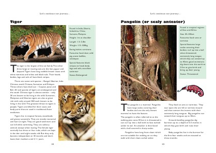 Tigers live in tropical forests, woodlands and grassy savannahs. They are mostly nocturnal and hunt at night. They are good swimmers and can kill while swimming. They are solitary animals except when mating. The female tiger normally has three or four cubs, which are kept in the den until eight weeks old. But they only become independent at 18 months and don’ t leave their mothers until 2 ½ years.