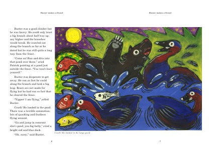 Crash! He landed in the pond. There was a terrible commotion, lots of quacking and feathers flying around.