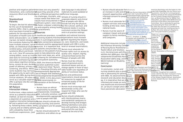 In 2019 , the American Nurses ’ Association published a position statement titled “ Nurse ’ s Role in Providing Ethically and Developmentally Appropriate Care to People with Intellectual and Developmental Disabilities ” ( ANA , 2019 ). In this document , the ANA recommends implementation of the following activities :