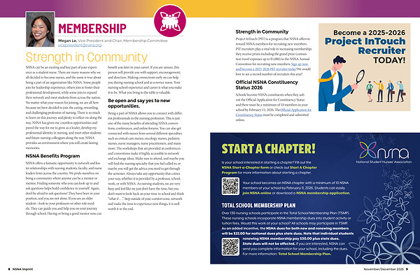 Your school becomes an NSNA chapter with a minimum of 10 NSNA members at your school by February 11, 2026. Students can easily join NSNA online or download a NSNA membership application.