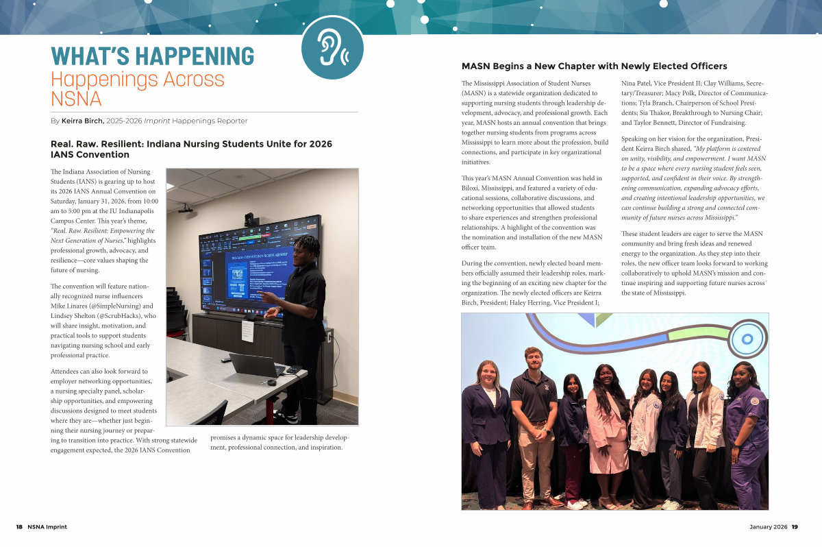 Attendees can also look forward to employer networking opportunities, a nursing specialty panel, scholarship opportunities, and empowering discussions designed to meet students where they are— whether just beginning their nursing journey or preparing to transition into practice. With strong statewide engagement expected, the 2026 IANS Convention promises a dynamic space for leadership development, professional connection, and inspiration.