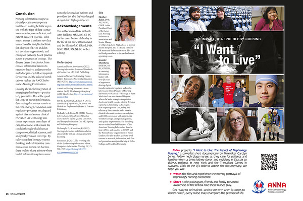 Looking ahead, the integration of emerging technologies— particularly generative AI— will expand the scope of nursing informatics, demanding that nurses remain at the core of design, validation, and regulatory processes to safeguard against bias and ensure clinical relevance. As technology continues to permeate every layer of care, informatics will remain the conduit through which human compassion, clinical acumen, and analytical precision converge. By cultivating data literacy, systems thinking, and collaborative communication, nurses can harness these tools to shape a future where health information systems serve not only the needs of patients and providers but also the broader goal of equitable, high‐quality care.