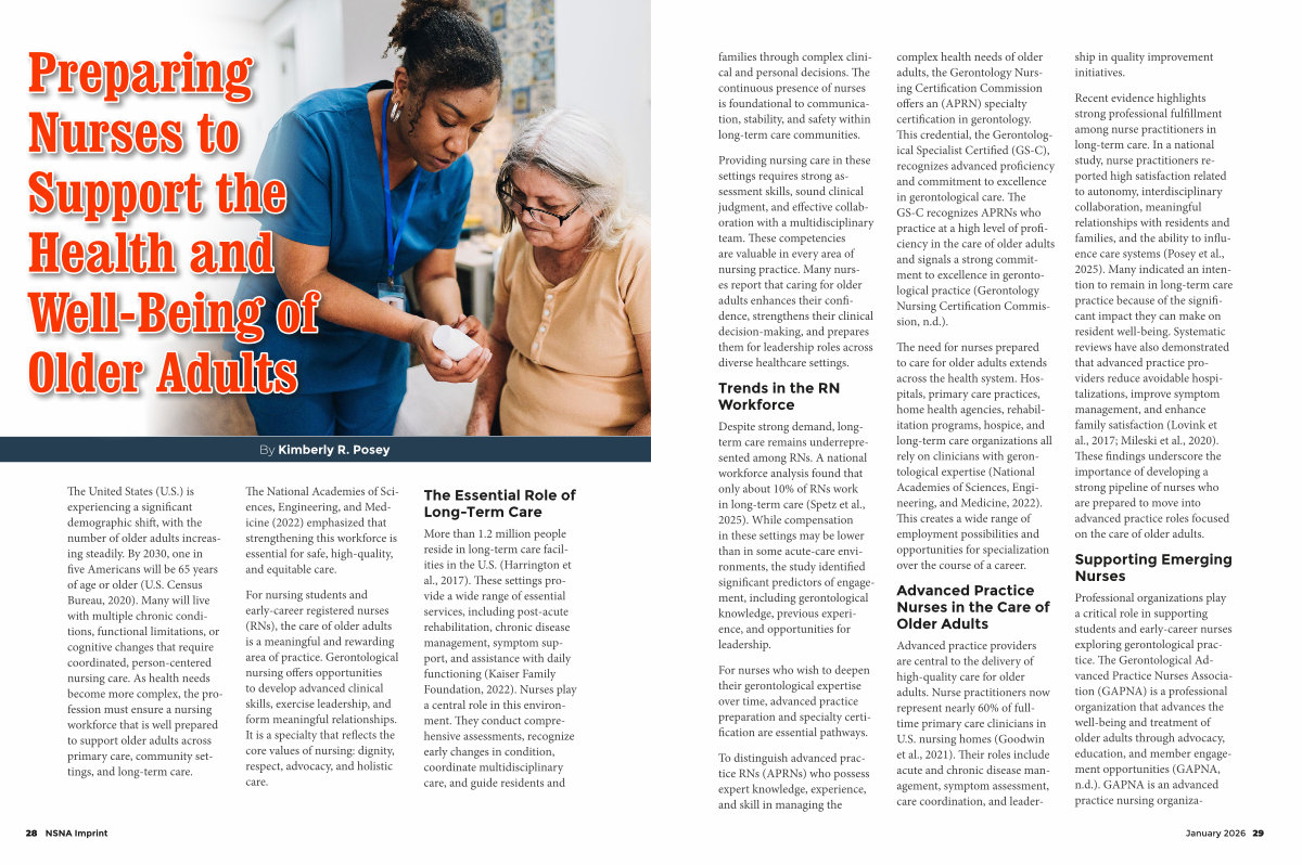 Recent evidence highlights strong professional fulfillment among nurse practitioners in long-term care. In a national study, nurse practitioners reported high satisfaction related to autonomy, interdisciplinary collaboration, meaningful relationships with residents and families, and the ability to influence care systems( Posey et al., 2025). Many indicated an intention to remain in long-term care practice because of the significant impact they can make on resident well-being. Systematic reviews have also demonstrated that advanced practice providers reduce avoidable hospitalizations, improve symptom management, and enhance family satisfaction( Lovink et al., 2017; Mileski et al., 2020). These findings underscore the importance of developing a strong pipeline of nurses who are prepared to move into advanced practice roles focused on the care of older adults.