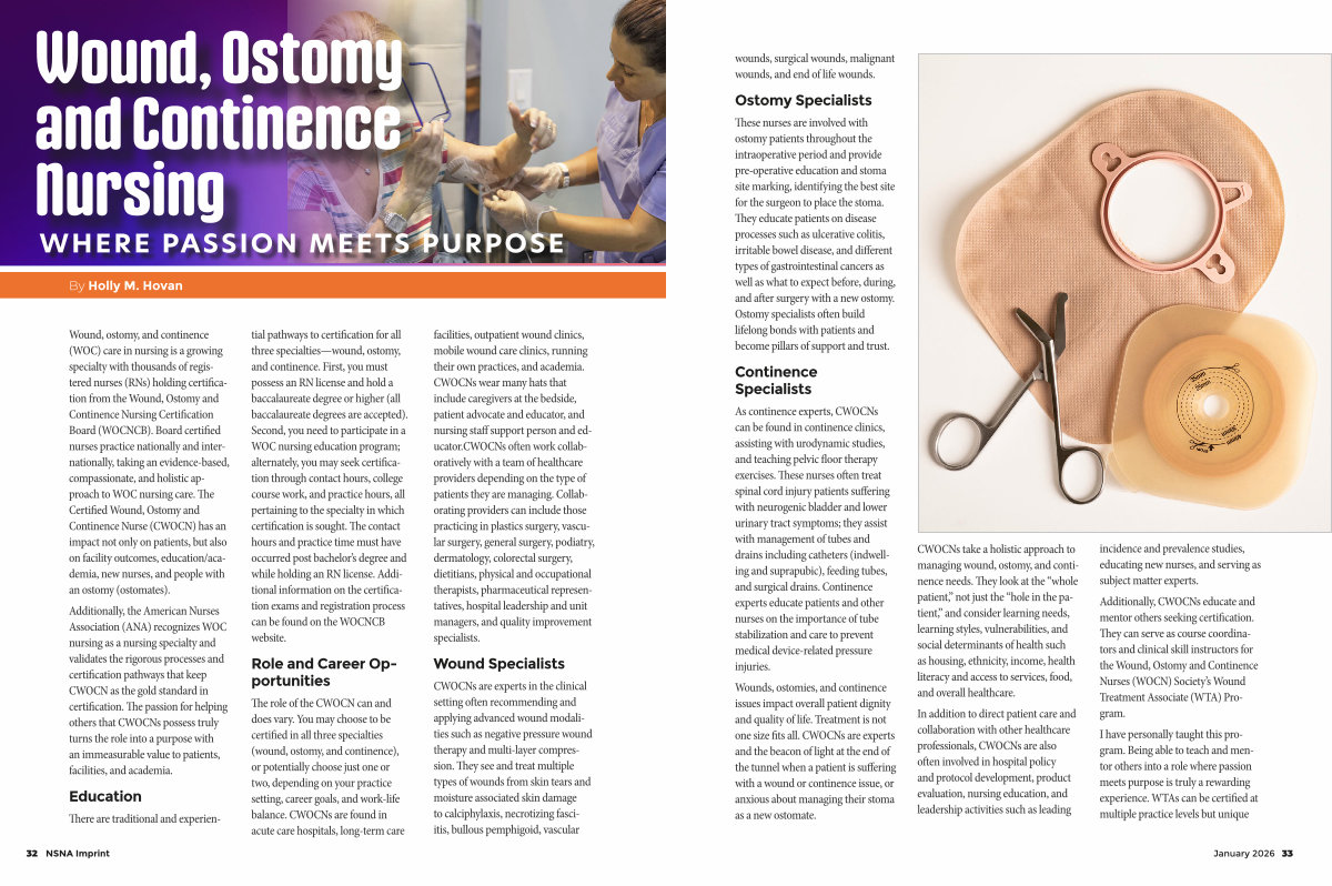 Wounds, ostomies, and continence issues impact overall patient dignity and quality of life. Treatment is not one size fits all. CWOCNs are experts and the beacon of light at the end of the tunnel when a patient is suffering with a wound or continence issue, or anxious about managing their stoma as a new ostomate.