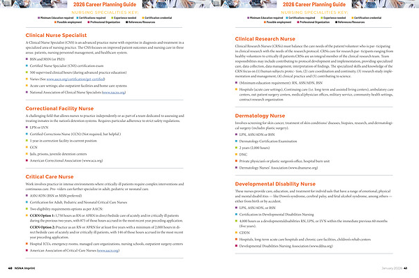 NURSING SPECIALITIES KEY: n Minimum Education required n Certifications required n Experience needed n Certification credential n Possible employment n Professional Organization n References / Resources