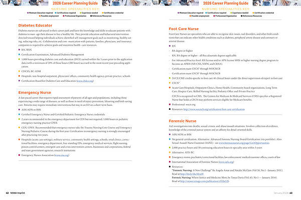 NURSING SPECIALITIES KEY: n Minimum Education required n Certifications required n Experience needed n Certification credential n Possible employment n Professional Organization n References / Resources