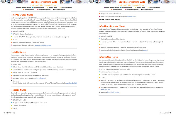 NURSING SPECIALITIES KEY: n Minimum Education required n Certifications required n Experience needed n Certification credential n Possible employment n Professional Organization n References / Resources