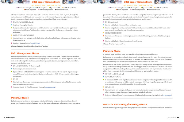 NURSING SPECIALITIES KEY: n Minimum Education required n Certifications required n Experience needed n Certification credential n Possible employment n Professional Organization n References / Resources