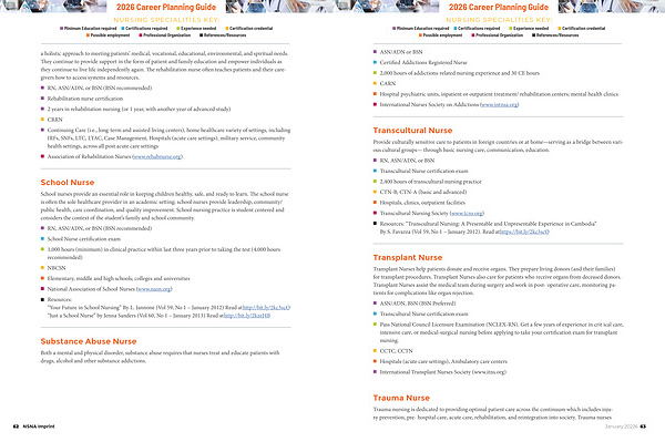 NURSING SPECIALITIES KEY: n Minimum Education required n Certifications required n Experience needed n Certification credential n Possible employment n Professional Organization n References / Resources