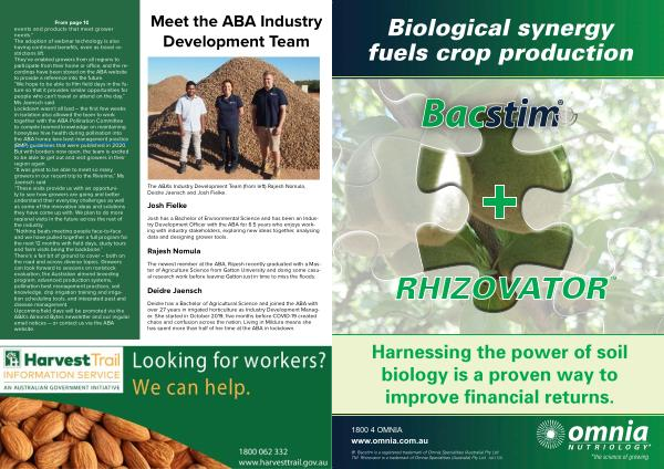 From page 10 events and products that meet grower needs .” The adoption of webinar technology is also having continued benefits , even as travel restrictions lift . They ’ ve enabled growers from all regions to participate from their home or office , and the recordings have been stored on the ABA website to provide a reference into the future . “ We hope to be able to film field days in the future so that it provides similar opportunities for people who can ’ t travel or attend on the day ,” Ms Jaensch said . Lockdown wasn ’ t all bad – the first few weeks in isolation also allowed the team to work together with the ABA Pollination Committee to compile learned knowledge on maintaining honeybee hive health during pollination into the