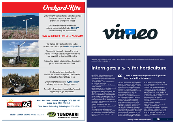 Adelaide University ag science student Austin Zangari shares his experiences as an intern with the Almond Board of Australia in the video above .