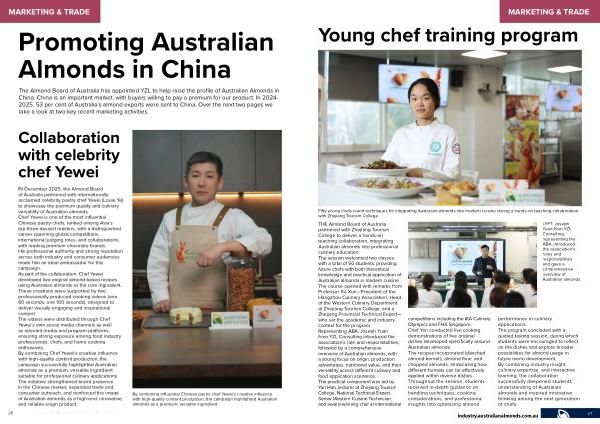 The Almond Board of Australia has appointed YZL to help raise the profile of Australian Almonds in China. China is an important market, with buyers willing to pay a premium for our product. In 2024- 2025, 53 per cent of Australia’ s almond exports were sent to China. Over the next two pages we take a look at two key recent marketing activities.