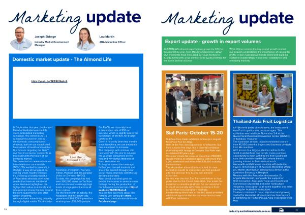 IN September this year , the Almond Board of Australia launched its much-anticipated marketing campaign , The Almond Life - a campaign focused on driving the domestic consumption of almonds , built on our established foundations of health and nutrition . Our focus is targeting the Gen Y and Gen Z consumer segments as this represents the future of our domestic market . The promotion is centered around three television commercials ( TVCs ). We wanted to promote a lifestyle ; a way of living built on making smart , healthy choices . It ’ s choosing a healthy handful of Australian almonds over other snacks that have no nutritional value . We have highlighted the high protein value in almonds and incorporated strong themes around the gym , supermarket and after school snacking . We have been advertising primarily through digital media . This includes