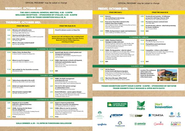 11.15 PANEL : The big question - what do I plant ? Nathan Payne ( Agfield Services ), Brendan Sidhu ( Century Orchards ), Luke Stoeckel ( Cannonball Almonds ), Ben Brown ( Select Harvests ), James Callipari ( Wilga Lane Produce ), Cassandra Collins , Roger Duncan ( UCCE ), Dr Sebastian Saa ( ABC ). Faciliated by Josh Fielke