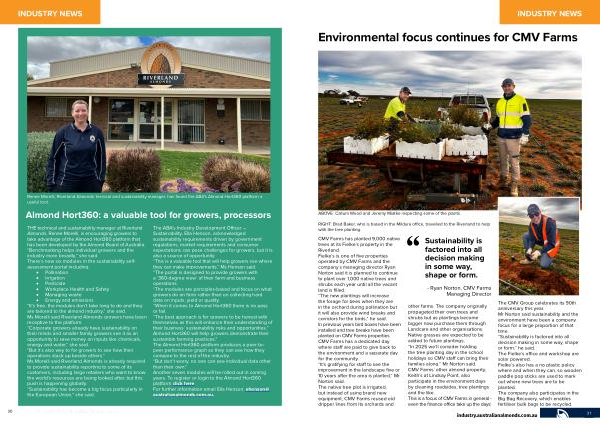 THE technical and sustainability manager at Riverland Almonds , Renee Morelli , is encouraging growers to take advantage of the Almond Hort360 platform that has been developed by the Almond Board of Australia . “ Benchmarking helps individual growers and the industry more broadly ,” she said . There ’ s now six modules in the sustainability selfassessment portal including :
