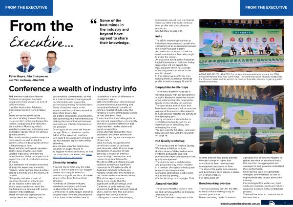 ABOVE AND BELOW : ABA CEO Tim Jackson represented the industry at the 2024 China International Tree Nuts Conference . The conference gave valuable insights into the Chinese market , and the work to be done for Australian almonds to gain a greater market share there .