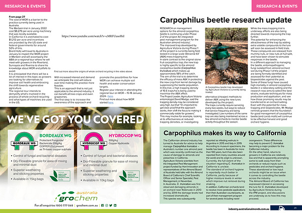 With increased interest and demand we anticipate the cost will reduce over time making this practice more feasible . This is an approach that is not just applicable to the almond industry , it can benefit all tree crops and even grapevines . The first step is to increase the awareness of the approach and promote the possibilities for how WOR can achieve multiple soil health and water conservation targets . Register your interest in attending the regional tour on WOR – 15-18 January 2024 - here . Find out more about how WOR started here .
