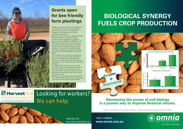 THERE ' S a new incentive for almond growers to become Bee Friendly Farming certified producers , with grants of up to $ 10,000 available to fund the planting of native pollinator-friendly plants . Applications are now open in the Bee Friendly Farming program ’ s tree grants initiative . Farmers and land managers can apply for grants of between $ 1000 and $ 10,000 – with $ 1 for each tree planted under the program administered by the Wheen Bee Foundation . Growers need to be Bee Friendly Farming certified – or have a Bee Friendly Farming certification application lodged and pending approval by the grant deadline of 21 August 2022 . The program aims to create new habitat and food sources for bees and other pollinators , which in turn helps growers by providing healthier and more divers pollinator colonies around the orchard , enhancing crop pollination outcomes . The ABA ' s ACE Orchard at Loxton recently received a grant that enabled the planting of new native plants in June ( pictured above ). In the first year of the grant program last year , 80 hectares of pollinator habitat was created across four states . Applications for the grants close at 5pm AEST on 21 August 2022 . Find out how to apply
