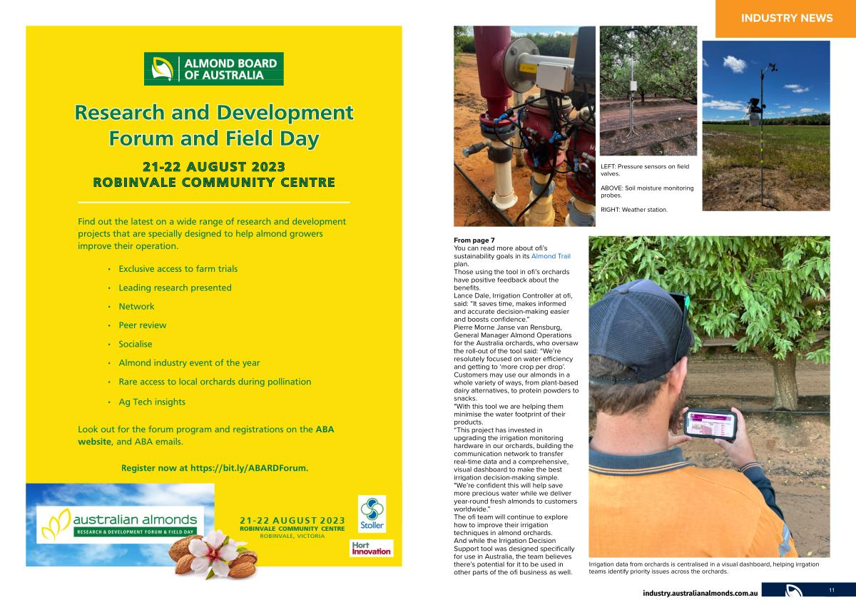 Find out the latest on a wide range of research and development projects that are specially designed to help almond growers improve their operation .